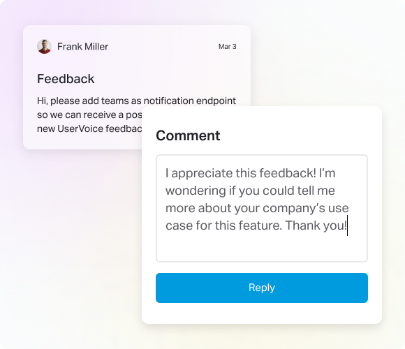 Your product conversations happen in context – right alongside Ideas, with the right people, at the right time. No more hunting through email threads or Slack channels to find "that important discussion."